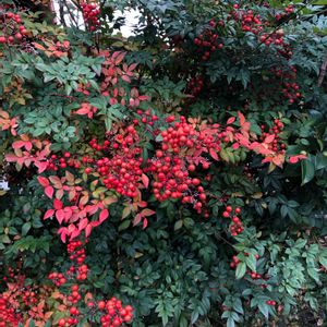 おはようございます😃 雨が上がり少し暖かい朝です 南天の実が真っ赤になりました 少し、葉っぱも色ずんで😌