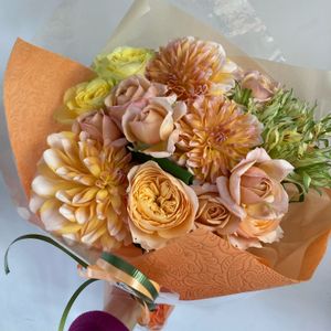 写真の花は、送別用の花束です💐 . . ▶︎バラ ▶︎バラ ラプソディ ▶︎スプレーバラ チアガールアプリコット ▶︎トルコキキョウ ▶︎デルフィニューム . . 是非他のお花などもご覧下さい✨✨ ____________________________ ◽︎Atelierk 【エリア】 大阪 / 淀屋橋 【営業時間】 [月〜土]10:00~19:00 [日・祝]10:00~18:00