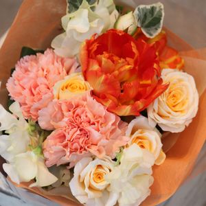 女性の方へご送別用花束💐 オレンジのチューリップがなんとも鮮やかでかわいい😍