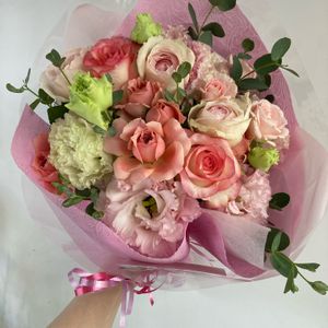写真の花は、送別用の花束です💐 . ▶︎バラ サザナミ ▶︎スプレーバラ シルバピンク ▶︎スプレーバラ ファンシーローラ ▶︎トルコキキョウ ▶︎セルリア ▶︎レモンリーフ . 是非他のお花などもご覧下さい✨✨ ____________________________ ◽︎Atelierk 【エリア】 大阪 / 淀屋橋 【営業時間】 [月〜土]10:00~19:00 [日・祝]10:00~18:00