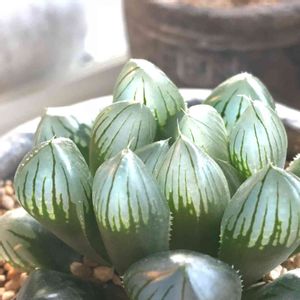 ハオルチア(ブラックオブツーサ)です。 妖しく翠に光る感じの窓✨ 今日はオブツーサとかが眩しいな(笑)
