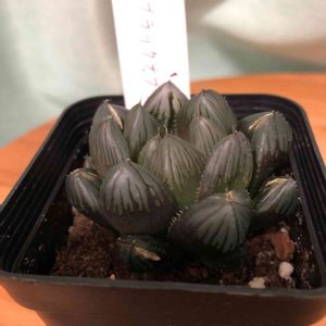 ハオルチア(ブラックオブツーサ)です。 最初名前を見た時はロード・オブ・ザ・リング的にブラック・オブ・ツーサなのかと思いましたが、オブツーサと言うのの黒(黒肌)タイプなのか、ブラック・オブツーサでした。自分の中でも、私の指輪ではなく(笑)、、普通に、ブラックオブツーサとなりました。。 ※育成灯照明時間にて。