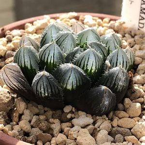 ブラックオブツーサ。2023/6/21(水)撮影。 この日はこのブラックオブツーサをはじめ5つのハオルチアたちを植え替えました😌 無事植え替えできてよかったですε-(´∀`*)ホッ 植え替えてから今日7/11(火)で20日目。そろそろ根付いてくれたかな…?