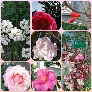 見た事無い🌸と言っていた白色のランタナに会った❤ サザンカ赤色は背が届かず(;_;) ハツユキカズラ バラ ハナミズキ実 今日、出会った🌼たち٩(♡ε♡ )۶
