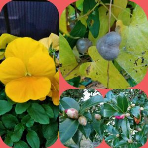 公園のフェンスにムカゴが!風のない時に•̀.̫•́✧ サザンカはもう少しで🌼🌼🌼 馴染みのパンジー今や沢山の色合いが有るから〜