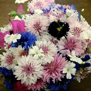 華やかです🌼午後から風が出て来て寒いです🌫 今日は散歩をさぼりま〜す😅 カサブランカとド忘れ!思い出せないム厶厶 SA.CHI.Yさん〜有難う〜アルストロメリア🌼でした。