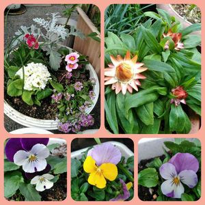 やっと寄せ植えしましたセンス無い😒 悩んだ末の3種類ビオラ 右上はコロロマンゴー🌼