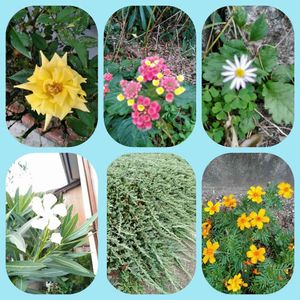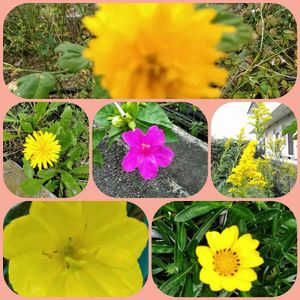 散歩に行こうと...公園まで行ったら雨粒☔ 足元の🌼達と🌴で終わった!本当の3歩(-_-;)
