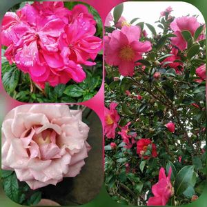 昨夜から☔頭が痛い😩 重たくて垂れてるゼラニウム🌼 開ききった🌹 公園のサザンカ🌸 元気出て来たよ〜