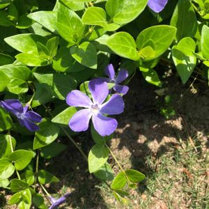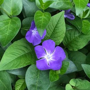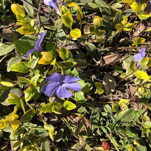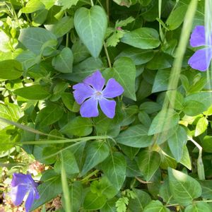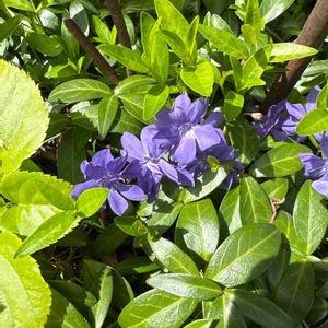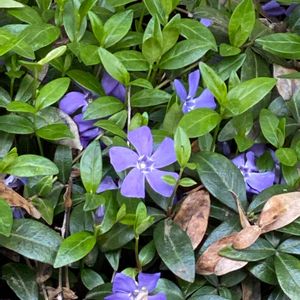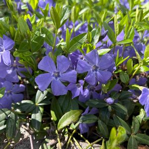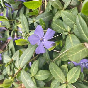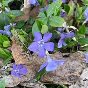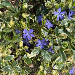 🏷春色の青い花2023 (今日からカウントダウンですね、青い花投稿を頑張りましょう) 青紫色のヒメツルニチニチソウが可愛いです💙🌿 ヒメの方が大きいツルニチニチソウよりも色が鮮やかに思います。 大きいツルニチニチソウは萼に毛がありますが、ヒメには毛がありません。 どちらも水仙のように五角形の副花冠があります。 ヒメツルニチニチソウの 花径 2.5cm〜3cm位 ツルニチニチソウは4cm〜5cm位あります。 キョウチクトウ科 ビンカ属
