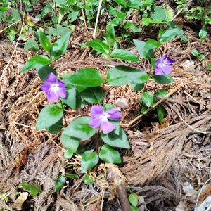 ヒメツルニチニチソウ 咲き始めの早さにびっくりして投稿した 2週間前。 順調に砂利のところで咲き進んでます💜 相変わらず汚い砂利😅💦💦