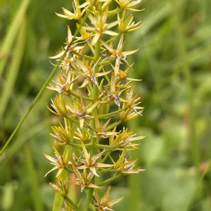 初夏にワタスゲを見に行った湿原に、イワショウブが咲いていました。 初めて見るお花は白い可愛いお花の集まり、細い茎の上に咲く姿はとってもステキでした✨🤍🌿 ③可愛い実も出来始めていました💕 ④モウセンゴケの中からの葉の様子🌿 ⑤昨日の田ノ原湿原は爽やかでした🎶 イワショウブ(岩菖蒲)…チシマゼキショウ科イワショウブ属の多年草。 細い葉が菖蒲に似ていることからの名、湿原や水分の多い所に育つ。 志賀高原(田ノ原湿原)にて…2025.8.21 その1