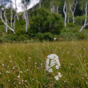 ウメバチソウはいつ見ても蕊の美しさにウットリ〜✨🤍🌿 まん丸の蕾や花後も可愛いかったです💕 ⑤湿原に咲く様子です…イワショウブのお花と一緒にワタスゲの後に咲いていました🌿✨🌿✨🌿 別名バイカソウ…梅の花に似ていることから。 志賀高原(田ノ原湿原)にて…その3