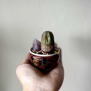2年間ちびちゃんのまま( ˙꒳ ˙ ٥) 朝晩、北風が吹いて涼しくなったので おちょこに穴をあけて植え替えてみました マグァンプを元肥に入れたので 元気な姿が観れるかな˚₊*(* ॑꒳ ॑*)*₊˚ このおちょこに墨こけしちゃまを植えたかったけど 盛大にはみだしちゃった(•́∀•̀ฅ)アレレ オベサくんの復活のおちょこになりますように(ㅅ´ ˘ `)♡