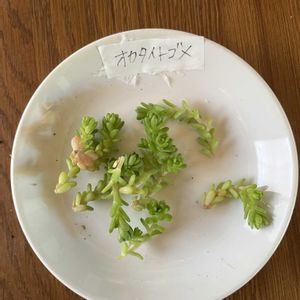 お迎え記録&夏越し報告です。 「オカタイトゴメ」は日本原産の多肉なのですが… どうも、地方により少しずつタイプの違うものが存在するようです。 私が今まで持っていたものが3種類あったのですが… (2種類については名前はわからず、はっきりとオカタイトゴメとは確認できていないのですが、たぶんそうだと思っています) 最近、もうひとつ加わったのでその記録です。 ★1枚目 最近入手した、浜松の「やまはる園芸」さんのもの。 ちまちま屋用に仕入れたものなのですが、このオカタイトゴメはうちにあるどれとも違うのでは? と思い、研究用にひと鉢確保しました。 葉が三角なのが3枚目のものと似ていますが、葉色や葉の大きさが違うように思います。 ★写真2枚目 これが一番出回っている「オカタイトゴメ」で、H&Lさん、いちかわふぁーむさん、が出しているのは2枚目のタイプだと思います。 おそらく、一般に流通しているオカタイトゴメのほとんどはこれではないかな~と思っています。 左と右の鉢は同じ種類ですが、右は根詰まりしているため締まって育っています。 根詰まりしている時と、そうでない(やや徒長)時の草姿の差が激しい種類で、ホームセンターにあるようなものはたいていびろーんと伸びています。 ★写真3枚目 わが家に昔から植えてあったもの。 ロゼットの大きさがかなり小さく、直径5-7mm程度です。葉が薄く、緑の色が濃いです。 これは徒長していても、葉が開く程度でそんなに大きく育ちません。 ★写真4枚目 わが家の近所で採取したもの。 これも3枚目の種類と同様、ロゼットは小さいですが、緑の色が少し明るく、葉がぷっくりしています。 ★写真5枚目 4種類全部を一緒に撮影しました。大きさの比較に。 育苗箱に植えてあるものはやや水切れしていたこともあり、ちょっと枯れていますが… 他は根元が枯れかかったりして、途中でカットして挿したりはしていますが、普通に夏越しできました。 直射日光に当てすぎさえしなければ、オカタイトゴメは夏越しはそこまで難しくはないです。 以前の様子は 🏷はなずきんオカタイトゴメ で見られます。