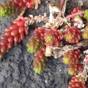 多肉? 海辺の断崖絶壁に生えてた。 レッドベリーのようでレッドベリーでない? 2つ答えもらって調べてみたんですけど、どっちか分かりません……