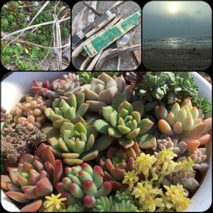 おはようございます😃 実家にきているので、昨日は久しぶりに海岸へ流木を拾いに行きました✨ いいお天気で、自生してるタイトゴメを見つけたり、カモメを見つめたり、のんびりできました😊 下の寄せ植えは実家用に強い種を寄せましたが、次に来た時はどうなっているか…😅 右上の写真は、カモメがいます🎶
