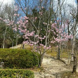 いわれを知って感動、ソメイヨシノより一足早いヨウコウ(陽光)。 バラ科サクラ属(スモモ属)。 夫が「綺麗に咲いていたよ」と言うので、帰宅途中で遠回りして見てきました。何本か並んで明るく、綺麗に咲き誇っていました。 ソメイヨシノより早く咲き、花は一重で大輪、綺麗なピンク色。 GSでたまたま同じサクラを見つけ、陽光桜と知りました。 戦後、高岡正明という教師だった方が、非戦と、戦死した生徒たちの冥福とを祈り、各地に桜を贈ることを思い立ち、環境適応能力が強いサクラを作ろうと、25年の試行錯誤の後に、寒さに強いソメイヨシノに由来を持つアマギヨシノと暑さに強いカンヒザクラを交雑させて誕生させたサクラとのこと。 歌や映画にもなったそう。 いわれを知り、感動💓 種類が多くても日本の桜の80%はソメイヨシノで、ソメイヨシノ以外の桜を見つけること自体珍しいことなので、出会えたときはぜひ、花びらの形や大きさ、色の違いなどを見てください、と書かれていました。