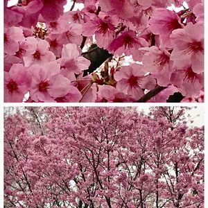 🌸桜巡り🌸 夫が綺麗だったよ、と言うので 午後から稲城市若葉台の南多摩尾根幹線通りへドライブ 濃いピンクの美しい陽光桜(ヨウコウ)が満開でした💕🌸💕 やはり2週間ほど早い 陽光桜(ヨウコウザクラ)は、「天城吉野(アマギヨシノ)」と「寒緋桜(カンヒザクラ)」との交配により生まれた、鮮やかな紅紫色で一重咲きの桜🌸