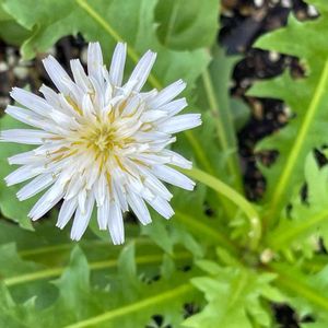 💚シロバナタンポポ🤍 今年のお花見😊🌸🍡でシロバナタンポポの綿毛を摘んで来ました。 蒔いたら芽が5つ出ました。 途中で虫に食べられたり暑さでなくなってしまったり😥 その中の1本がスクスクと育って、ついにお花が咲きました💕 念願だったシロバナタンポポ(◍´꒳`◍) お庭いっぱいに増えてくれたら嬉しいな🎶 (増え過ぎたら後悔するかな💦)