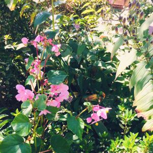 五葉松の下の秋🐝⋆゜.•*¨*•.¸¸♬ 秋海棠とホトトギス◡̈⃝︎⋆︎*