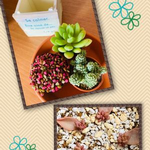最近、祖母の入院などでバタバタして多肉時間がなく先日購入した新入りちゃんが一つバラバラ、ポロポロ…😱💦 急いで他の子たちを植替えました。場所もなく一緒に…。 下の多肉ちゃんは、春のマルシェでお迎えした子。あまり成長変化はしてないみたいだけど元気そうだな〜😊