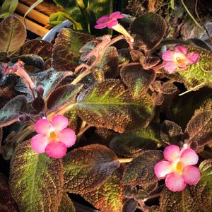 葉が渋いエピスシア・クプレアータ✨ ピンクの花を咲かせました🌸