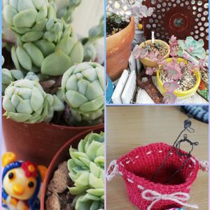 こんにちは🍀 暑いですね☀️😵💦 静夜が 丸くてかわいくなってます 赤葉日高ミセバヤも 色づきはじめてる🎵 先日 とってもかわいい(*≧з≦) 素敵便✨🎁✨が *tomo* さんより 届きました➰🎶 麻編みあみ鉢 超ミニマスク 🐌🐸ピック🎀 ありがとー😆💕✨