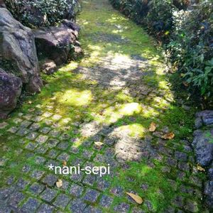 この、苔蒸した庭が、好きです。😊京都に、来たみたい。城川町の、小さな美術館の前の、こみち。