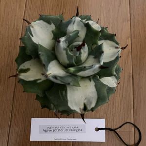 お墓参りに行くついでに寄った園芸店🍀 部屋の育って増える植物を減らす一年にしようと思っていたのに✨✨✨ ベランダに置くからいいかと誘惑に負けた私🤣 ベランダに多肉マンションを作ったのに😥 やっぱり美しい💕💖💕💖💕 アガベ ポタトラム バリエガタ (備忘録)