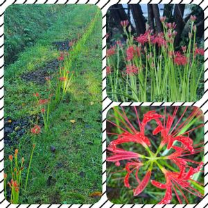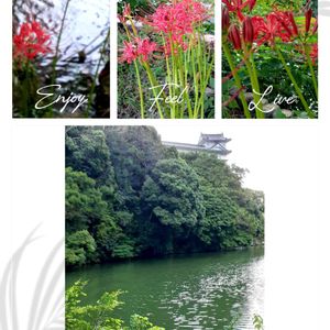 おはようさん🤗 ヒガンバナ ヒガンバナ科 ヒガンバナ属の多年草 別名は曼珠沙華、 学名からリコリス・ラジアータとも呼ばれる。 お城🏯内濠の周りは 赤いお花で彩られてます