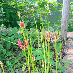 今日のお花 ヒガンバナ 𖥧𖧧 ˒˒.𖥧𖧧 ˒˒.𖥧𖧧 ˒˒. 昨日までは 赤い蕾も 見えてなかったのに… 今朝はふっくら花弁が 開きかけ… 明日の朝には 長い蘂を沢山伸ばして 真赤に開花してますネ👍 秘かに準備中から 一気に開花する ヒガンバナ💖💖 お彼岸です…
