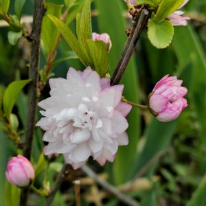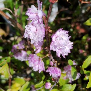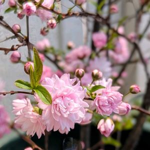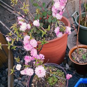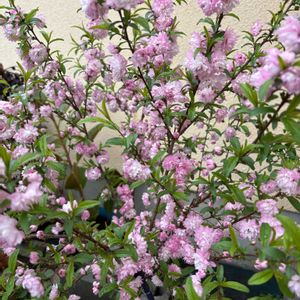 庭桜八重有ったんやベランダで咲いてる👌ニワウメも花散り小さな梅沢山付くよ、サンシュも花終わり実が付いて欲しい