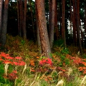 小坂田の夕暮れ③ 赤松林 こんなの投稿してもいいのかな? ま、いいや😄 ウルシかなぁ紅い葉っぱが綺麗だったので…
