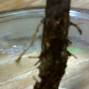 立ち直れない⤵⤵⤵ せっかく大きくなっていたのに・・・ 🌱草とりしていたら…いっしょにスルっと抜けてきた〰😱😱😱 🌹フロウ🌹 鉢を返すと👿👿 コガネムシ が〰〰〰ん 油断していた⤵⤵⤵ (T^T) 再生出来るか❌自信がない😱😱😱 私・立ち直れません・…