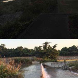 早朝散歩❣️今朝もいい天気なので朝焼けも綺麗でした☀️ 川の水にも朝日が当たってオレンジに輝いてました✨