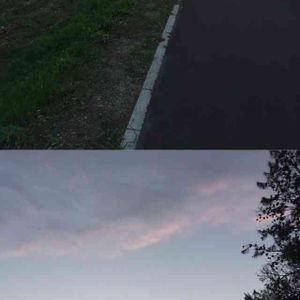 早朝散歩❣️☔️続きで久しぶりだ! 木々の間から朝日が差し込み🌅そして振り向けば長〜〜い木々の影がずっ〜と伸びてましたよ