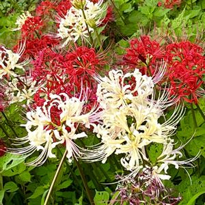 9/30㈪② bowと二人で行って見てきました〜😃 埼玉県日高市高麗(こま)にある巾着田の曼珠沙華の絨毯を見に!! 一面の赤、赤、赤で、玉〜に白い花がポツンとありました❤️❤️🤍❤️  「いやだ!綺麗〜!!」と感嘆してる方がいました🤭そこは「いやだ」ではなくて「わぁ〜!」とか「まぁ〜!」ではないかしら?🤣🤣 咲き始めでホントに綺麗で感動しました〜❤️❤️❤️🤍❤️❤️❤️ 今日は📱で撮った方の写真です。 通路を歩く人々をなるべく入れないように撮りました✌ 白い花は蛍を育ててるという小さな川辺りに割と咲いていました♡ お昼は高麗に向かう道にあった阿里山というお洒落なレストランで食べました😋 これから池袋東武デパートの屋上庭園を見に行きます!!  初めて行くのでワクワクです♡ ←なんと東武デパートの庭園は7年くらい前に閉じられたそうです。園芸店と、屋上休憩所になっていました!! あれぇ?西武デパートの屋上でした?と西武デパートに行ったら、8階のレストラン街🍴と9階の屋上庭園は営業していて、その他は8/21に閉店したそうです😳!! 庭園は見られたので良かったです〜🤗💞 知らなかったなぁ〜NEWS聞き流してしまっていたのね〜😅💦