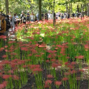 埼玉県日高市 『巾着田曼珠沙華祭り』② 林の中から光が差し込んで とても神秘的でした〜❤️