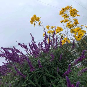 こんばんは〜😊 今日は、ぽかぽか陽気の気持ちの良い一日を過ごせました🤗🎶 ご近所さんに、背の高い「アメジストセージ」&と黄色のお花が、背くらべしながら咲いていましたよ🤭💜🌿🌼🌿❣️ 毎日が今日みたいな日だと、身体にも心にも心にも良さそうなんですけれどね😉 いつも見て頂き どうもありがとうございます😉💗