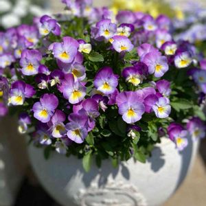 農業屋さんの隅っこで 安売りされてたビオラちゃんを 連れて帰って豪華な(?)鉢に 植え替えたのは12月…。 今ではお気に入り💕😘💕