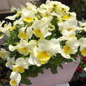 次々と徒長して花数が少なくなってきているビオラ達のなかで、なぜかモリモリと咲いているひとつの鉢笑😁 あと1か月咲いてよ🌸