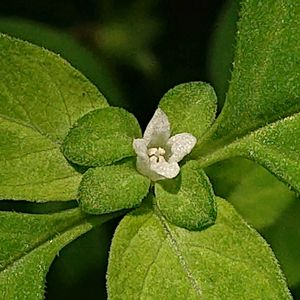林道にて。ミゾホオズキを見た側です。緑の葉っぱの中に白い小さなお花が見え隠れしています☺️✨ 教えていただきました🌿 【ハシカグサ】 ・2mm程の白い花は先端や葉腋に数個つく ・葉は対生し、萼は鐘型で白い軟毛がある 2023.9.3 黒尾山 兵庫県宍粟市