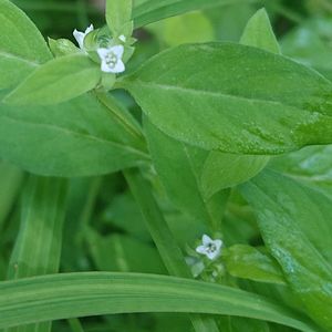 ハシカグサ🤍 アカネ科 半日陰の家の裏に広がっており小さな 白い花が点々と付けている。 花は2mmで数個束生、葉は対生し長さ 2〜6cm卵形