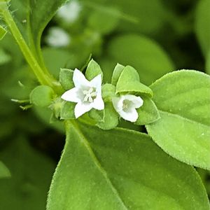 9月21日撮影 耶麻郡北塩原村 泊まったところの庭です。 初めは〇〇ムグラかな?と思って撮影しました。夕方で暗かったのでピントが合わなくて難しかったです。 葉の幅が広いのと、花の形もなんとなく違うような気がして 白い花弁の花で検索。 花は葉腋にできる。 ハシカグサ アカネ科フタバムグラ属 〇〇ムグラと同じアカネ科でした。 どうでしょうか?違っていたら教えてください。
