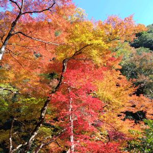 箕面の大滝 滝とモミジと青空がすてきでした。