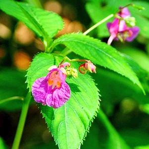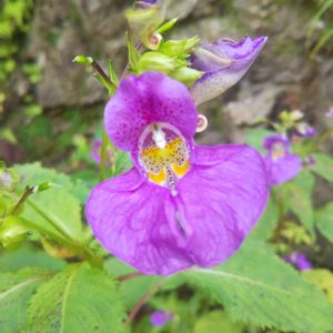 ワタラセツリフネソウ?😅 手取渓谷の綿が滝に降りて行く 階段の横にたくさん咲いていました😍💜✨