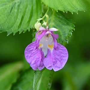 ワタラセツリフネソウ ツリフネソウ科ツリフネソウ属 2005年に新種として認定されたツリフネソウである。 ツリフネソウとの違いは、小花弁が短くて、黒く萎縮してしまうのが、大きな特徴である。