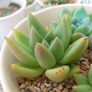 「グリーンクリーン」 Green crean アルビカンス×ベビーフィンガー ベンケイソウ科 パキベリア属 ちいちゃなった。😓