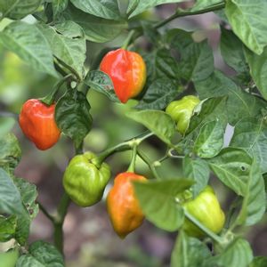 今朝の庭から➰ ① ハバネロ ❤️💚🧡色付いて来ました♪ ② ③ チャールズ ダーウィン 本来の💛色で咲いてます♡